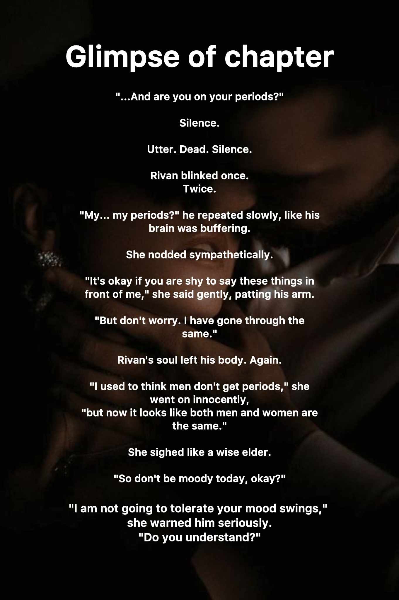 𝘼 𝙖𝙧𝙧𝙖𝙣𝙜𝙚𝙙 𝙛𝙤𝙧𝙘𝙚𝙙 𝙖𝙡𝙢𝙤𝙨𝙩 𝙘𝙤𝙣𝙩𝙧𝙖𝙘𝙩 𝙢𝙖𝙧𝙧𝙞𝙖𝙜𝙚 𝙡𝙤𝙫𝙚 𝙨𝙩𝙤𝙧𝙮 Tanushree - calm, warm, a trembling soul who owns a small bouquet shop and counts numbers whenever fear grips her heart ...is pushed into a marriage she never imagined. She walks into his world as an ᴜɴᴡᴀɴᴛᴇᴅ ʙʀɪᴅᴇ, ʙʀᴇᴀᴋɪɴɢ ʀᴜʟᴇꜱ ᴡɪᴛʜᴏᴜᴛ ᴇᴠᴇɴ ᴛʀʏɪɴɢ. Vansh Malhotra - lives alone in a dark penthouse that feels more like a jungle than a home. He hates humans, avoids emotions, and surrounds himself only with wild creatures and strict routines. ꜱɪʟᴇɴᴄᴇ ɪꜱ ʜɪꜱ ᴄᴏᴍꜰᴏʀᴛ. ʀᴜʟᴇꜱ ᴀʀᴇ ʜɪꜱ ʟᴀɴɢᴜᴀɢᴇ. My chest tightened. Something inside me cracked quietly. I nodded. He wasn't done. "One more thing." His voice was low. Dangerous. "Make yourself dead when I'm home." I froze. "Is it clear?" My throat burned. I nodded again. Yes. Clear. I didn't cry loudly. I didn't scream. I just... sat there. Counting. One... two... three... four... My only way to stay sane. She thought he would love her and care for her like other husbands. But her thoughts turned into fear when she spent her wedding night outside the penthouse in the freezing cold, with not a single human around, whispering to herself that he might open the gate for her. And the man who warned her to "disappear" starts noticing the one presence he can't ignore. In a marriage built on conditions, distance, and unspoken threats... something strange begins to grow. Will Vansh accept a new human in his world? Or will Tanushree disappear trying to survive in it? ‼️ Continue only if you are comfortable with such stories. This is not for soft-hearted people. It contains mature content and mentions of blood. --------------------------------------- hope you like my story author maya♡