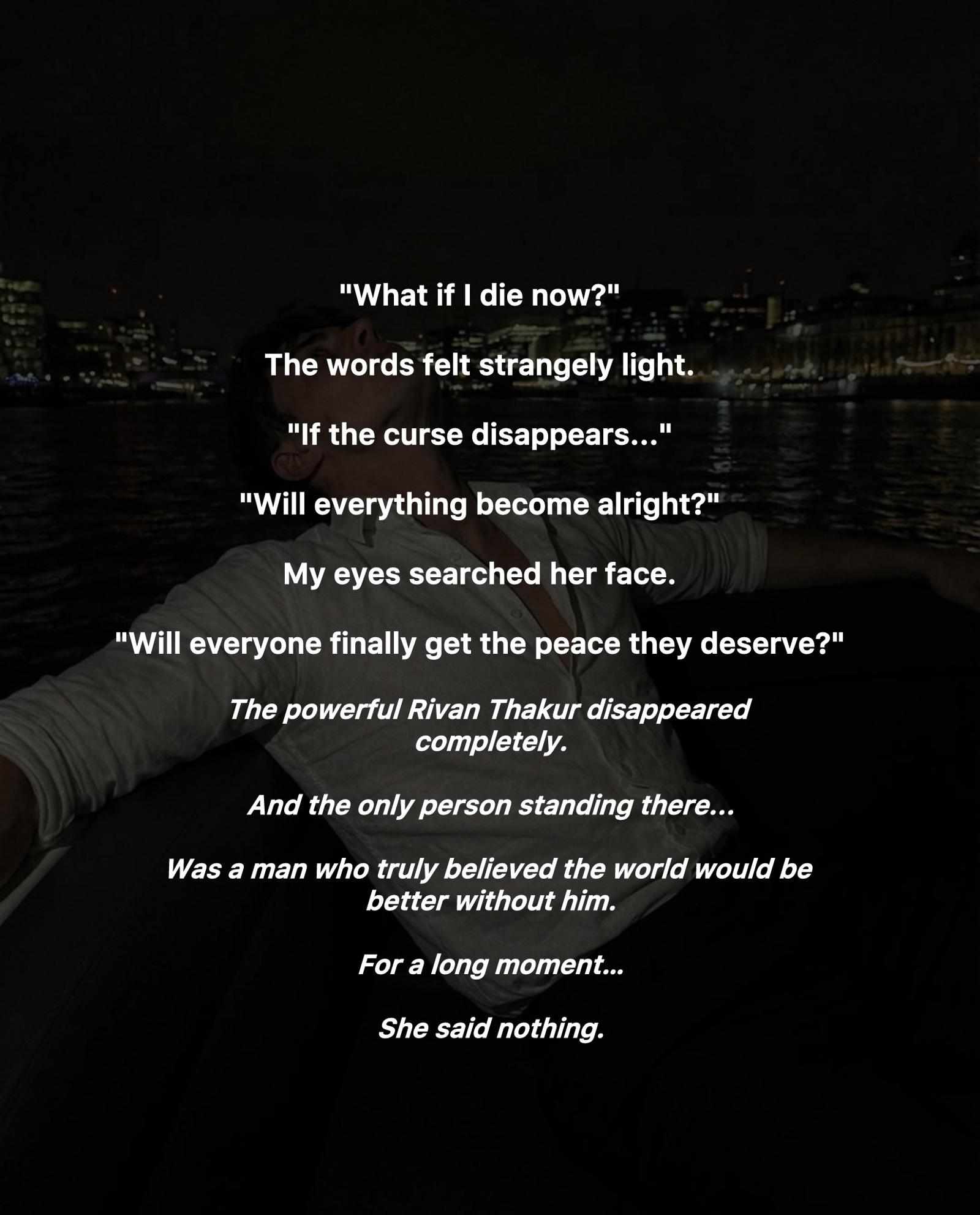 𝘼 𝙖𝙧𝙧𝙖𝙣𝙜𝙚𝙙 𝙛𝙤𝙧𝙘𝙚𝙙 𝙖𝙡𝙢𝙤𝙨𝙩 𝙘𝙤𝙣𝙩𝙧𝙖𝙘𝙩 𝙢𝙖𝙧𝙧𝙞𝙖𝙜𝙚 𝙡𝙤𝙫𝙚 𝙨𝙩𝙤𝙧𝙮 Tanushree - calm, warm, a trembling soul who owns a small bouquet shop and counts numbers whenever fear grips her heart ...is pushed into a marriage she never imagined. She walks into his world as an ᴜɴᴡᴀɴᴛᴇᴅ ʙʀɪᴅᴇ, ʙʀᴇᴀᴋɪɴɢ ʀᴜʟᴇꜱ ᴡɪᴛʜᴏᴜᴛ ᴇᴠᴇɴ ᴛʀʏɪɴɢ. Vansh Malhotra - lives alone in a dark penthouse that feels more like a jungle than a home. He hates humans, avoids emotions, and surrounds himself only with wild creatures and strict routines. ꜱɪʟᴇɴᴄᴇ ɪꜱ ʜɪꜱ ᴄᴏᴍꜰᴏʀᴛ. ʀᴜʟᴇꜱ ᴀʀᴇ ʜɪꜱ ʟᴀɴɢᴜᴀɢᴇ. My chest tightened. Something inside me cracked quietly. I nodded. He wasn't done. "One more thing." His voice was low. Dangerous. "Make yourself dead when I'm home." I froze. "Is it clear?" My throat burned. I nodded again. Yes. Clear. I didn't cry loudly. I didn't scream. I just... sat there. Counting. One... two... three... four... My only way to stay sane. She thought he would love her and care for her like other husbands. But her thoughts turned into fear when she spent her wedding night outside the penthouse in the freezing cold, with not a single human around, whispering to herself that he might open the gate for her. And the man who warned her to "disappear" starts noticing the one presence he can't ignore. In a marriage built on conditions, distance, and unspoken threats... something strange begins to grow. Will Vansh accept a new human in his world? Or will Tanushree disappear trying to survive in it? ‼️ Continue only if you are comfortable with such stories. This is not for soft-hearted people. It contains mature content and mentions of blood. --------------------------------------- hope you like my story author maya♡